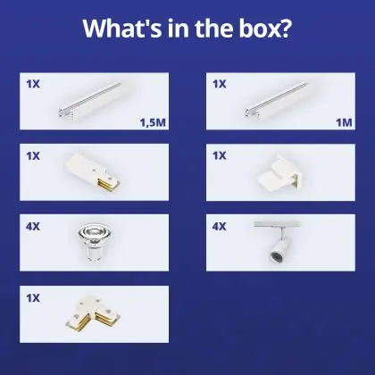 Complete Set 1-Fase Rail L 1 x 1,5 Meter Wit | incl. 4x Spot + GU10 2700K 3W Dimbaar + Eindkap, Voedingsconnector en L -Verbindingsstuk