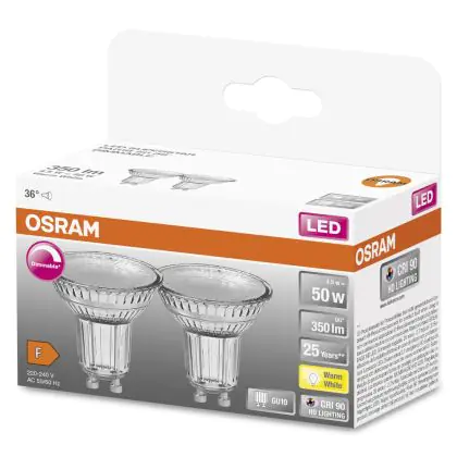 Osram Superstar LED GU10 Spot 4.5W 350lm - 927 Zeer Warm Wit | Dimbaar - Beste Kleurweergave - Set van 2 - Vervangt 50W